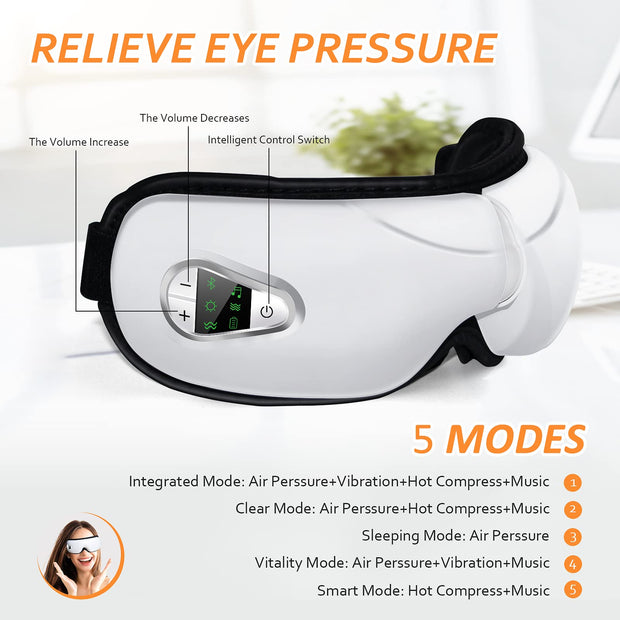 Legiral E1 Eye Massager with Heat, Eye Therapy Massager with Compression, Vibration, Blue Music, 5 Modes Rechargeable