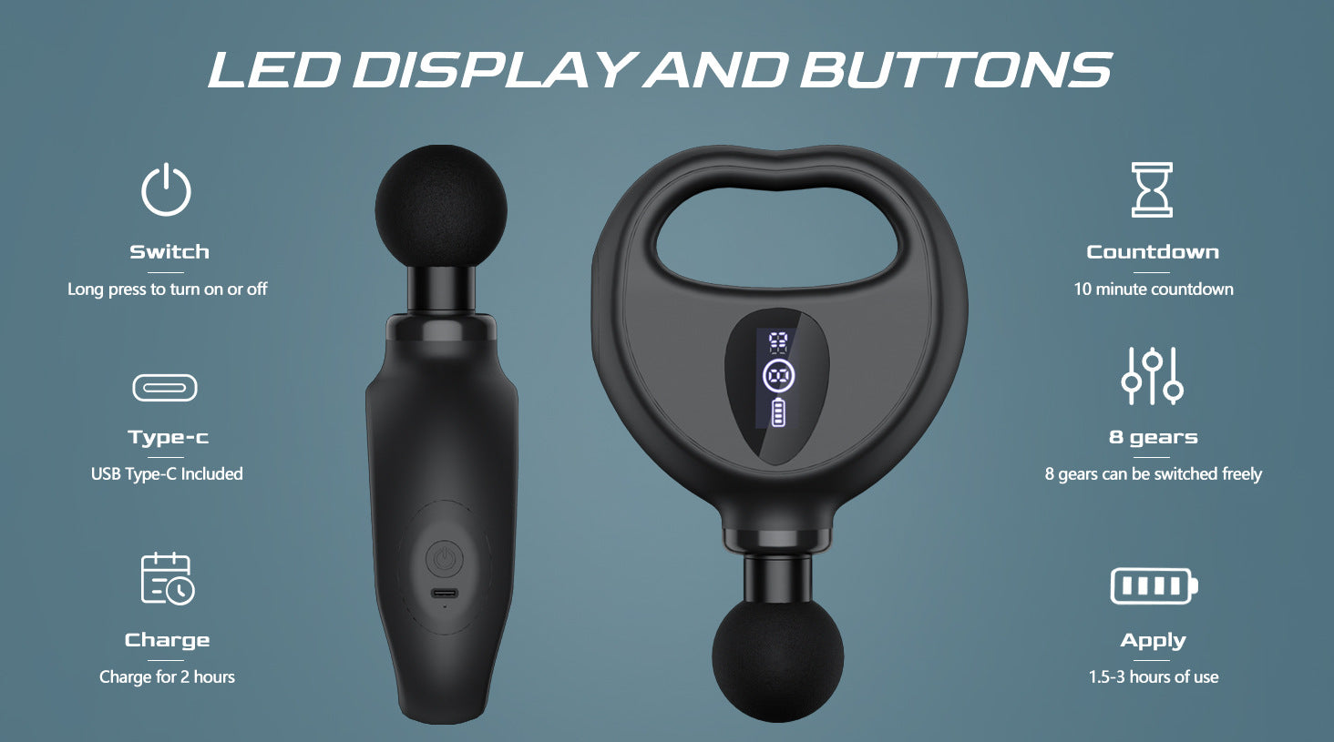 Legiral LEmini Massage Gun Deep Tissue Percussion Massager for Athletes with 5 Types of Massage Heads and 8 Speeds Adjustment Rechargeable for Pain Relief and Muscle Relaxation